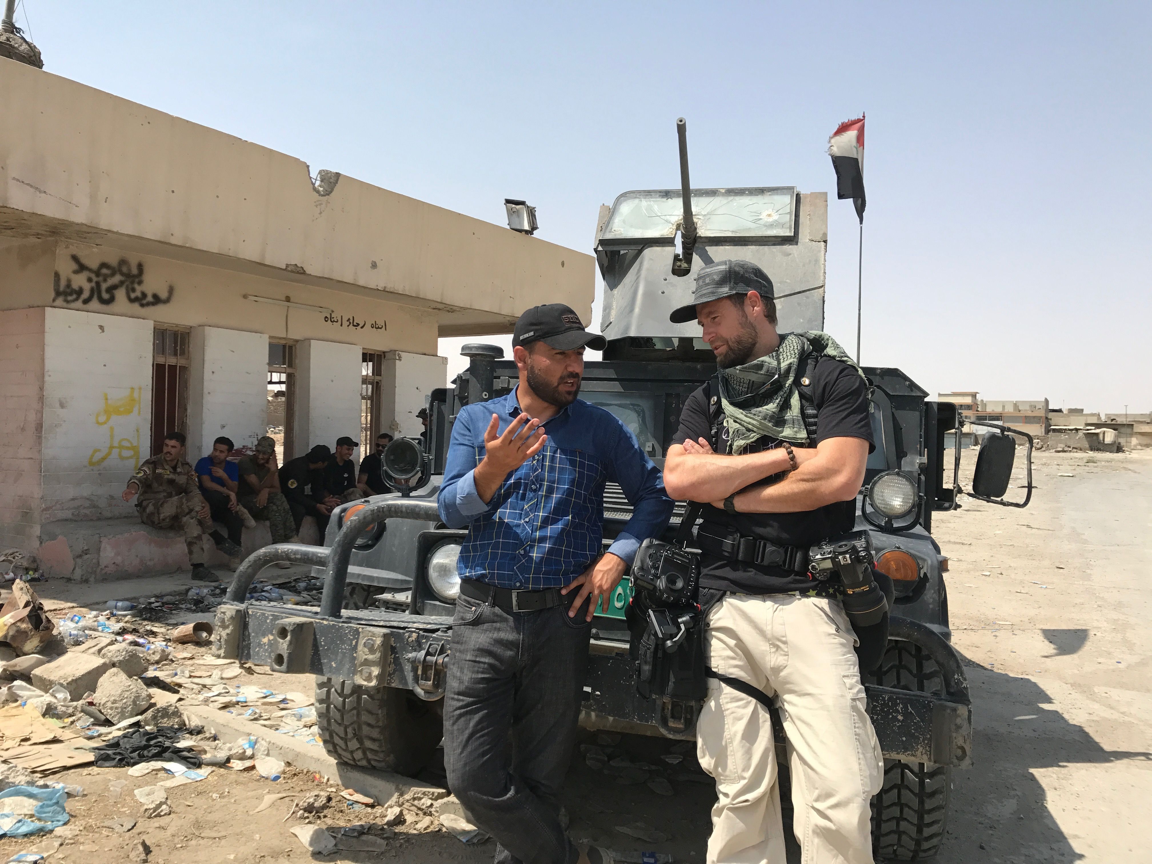 It's 3:45 in the morning. Kareem sits in the front of a somewhat rugged and non-descript white SUV as we are picking up journos in Erbil. He talks to his driver in short, accurate sentences. "This is why I'd rather arrange only one pick-up location in the morning" he explains as we try to find our way through the narrow alleys of Ainkawa, the Christian quarter in Erbil. No street names, just rough indications. We try to find the place to pick up another journalist. Then drive the 2,5 hours to Mosul, where liberation is yet to be declared. "It's easier in the early morning. Otherwise we'll wait forever at the checkpoints" he continues. He seems a little on edge while we search for the right street, but he stays calm and friendly. Then we see the other journo waiting at the corner, somehow lost with his backpack, ballistic vest and helmet. He jumps in with a big and charming grin, we hit the road, our driver obviously being in race mode. I think I can hear Kareem whisper to him „bsre“, the Arabic word for „presto“.